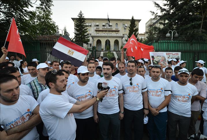 Protest outside US and Egypt embassies in Ankara after massacre in Egypt