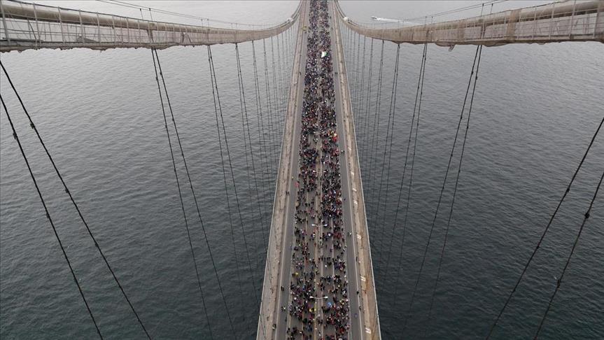 The marathon is also the only legal chance for people to cross the Bosporus Bridge on foot.