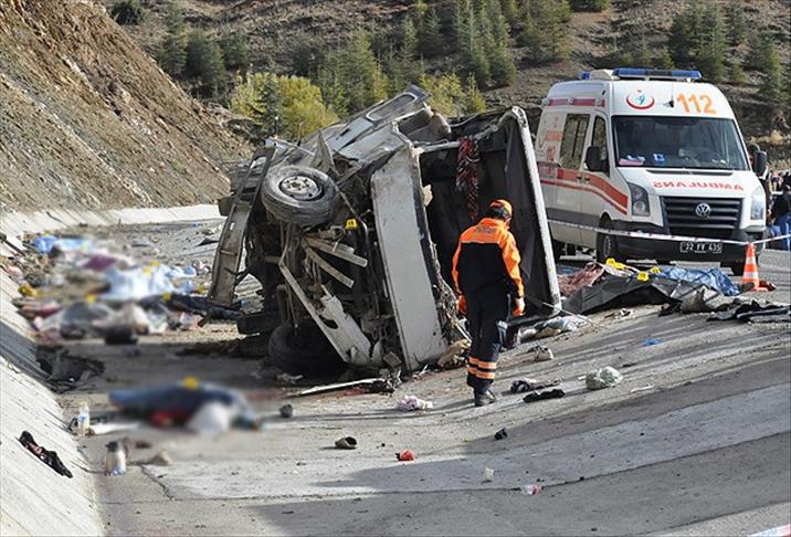 At least 17 people were killed, and another 28 wounded, when a minibus carrying agricultural workers turned over in the Yalvac district of the western Isparta province on Friday.
