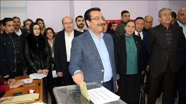 Ruling Justice and Development (AK) Party’s mayoral candidate for the Aegean Izmir province Nihat Zeybekci voted in Turkey’s local election in Izmir on Sunday.