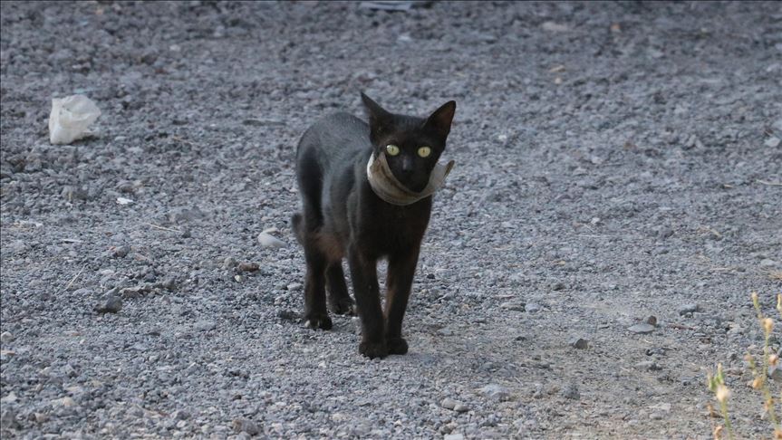 Coal, a black cat prowling the streets of the Hatay province, was only trying to drink some milk near a trash dumpster when she had the misfortune of getting her head stuck in a jar.