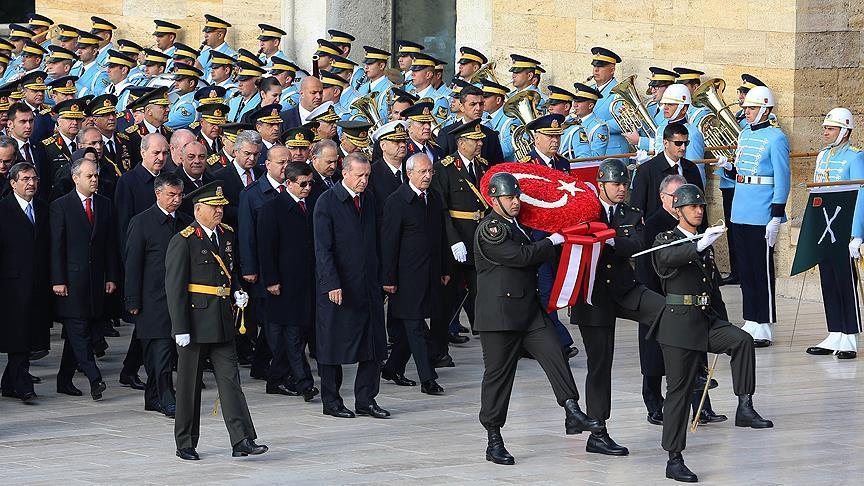 Headed by President Recep Tayyip Erdogan, the ceremony was attended by numerous state and military officials including Parliament Speaker Ismet Yilmaz, Prime Minister Ahmet Davutoglu, General Staff Chief General Hulusi Akar as well as opposition party leaders with the exception of except Nationalist Movement Party leader Devlet Bahceli.