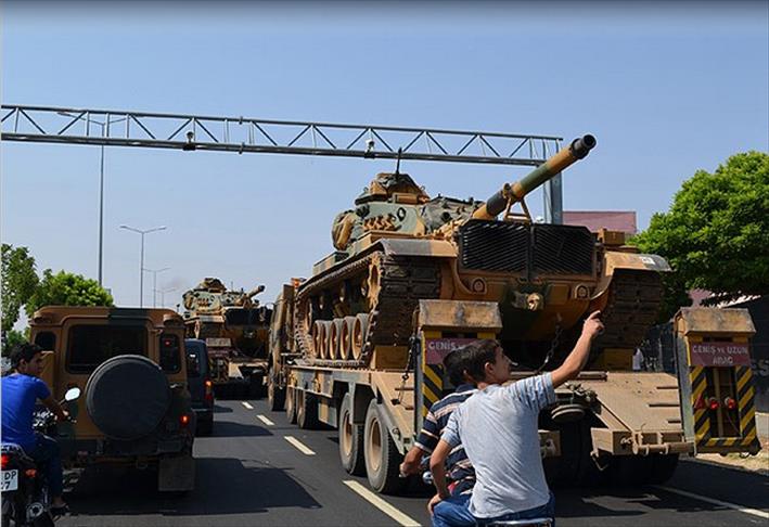 SANLIURFA/KILIS (AA) - July 30, 2012 - Turkey sent more troops, tanks and other military equipment on Monday to its border with Syria as Assad forces hit Aleppo, the country's second largest city, in air and land attacks.