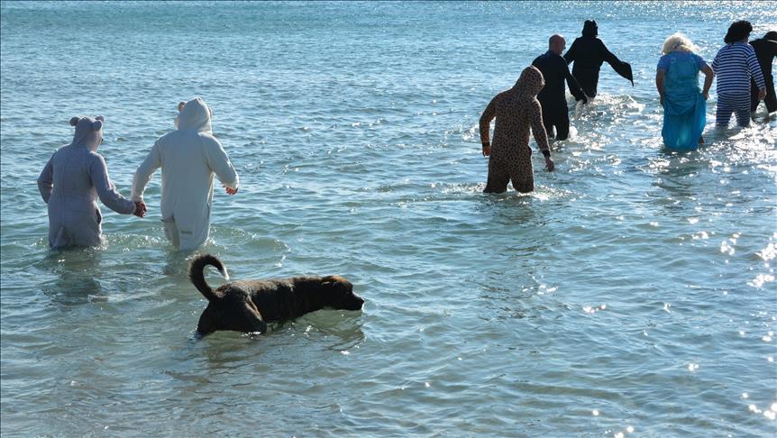 Ali Karahalli, a local veterinarian, told Anadolu Agency that they didn't mind the cold water and even had fun while braving the end-of-year seas.