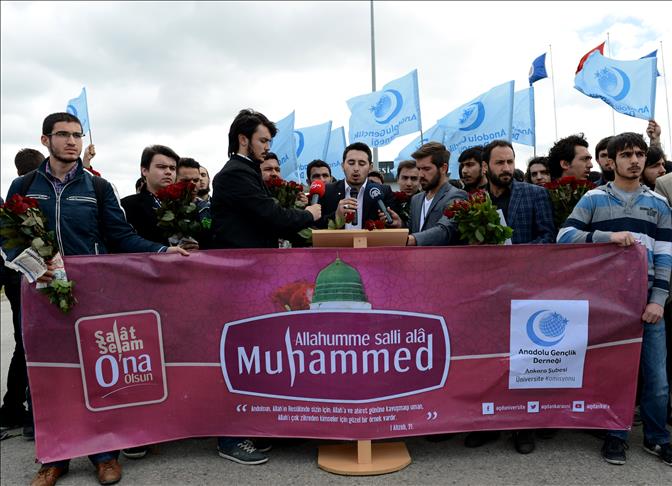 Students from the association were standing outside the entrance of Ankara University’s Golbasi campus. They were holding 571 roses, representing the Prophet’s birth year, and waiting to enter the campus to place the roses.