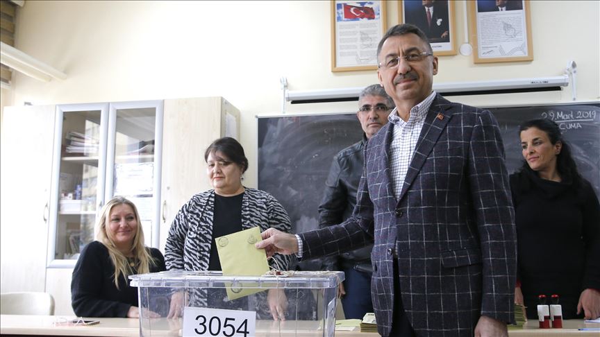Turkey's Vice President Fuat Oktay cast his ballot in the capital Ankara on Sunday in local elections.