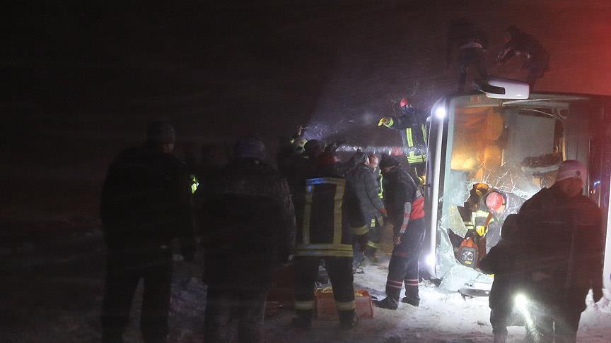 One of the buses rolled over on the roadside on Kayseri-Malatya Highway due to ice in a blizzard, police sources said. Fourteen passengers were wounded.