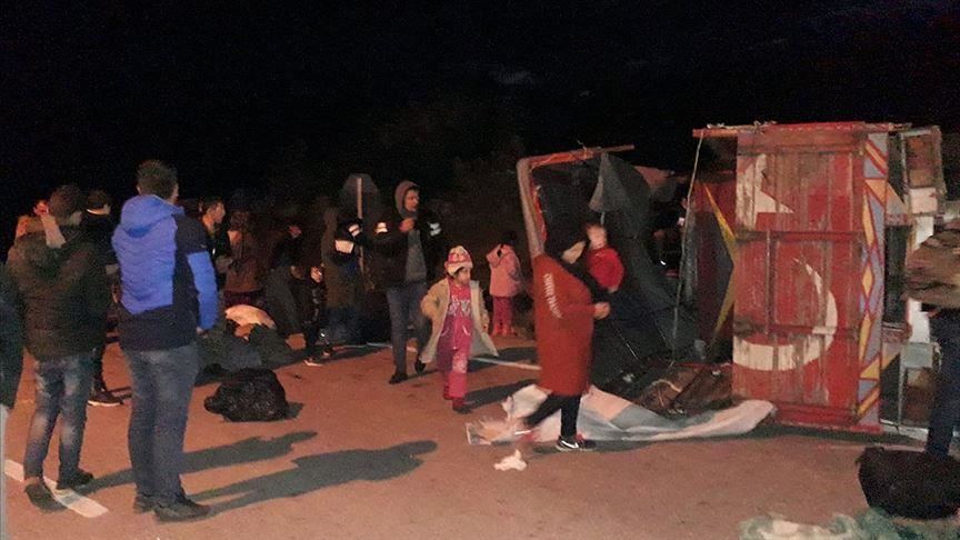 The truck overturned in Canakkale’s Ezine district while it was carrying 50 irregular migrants.