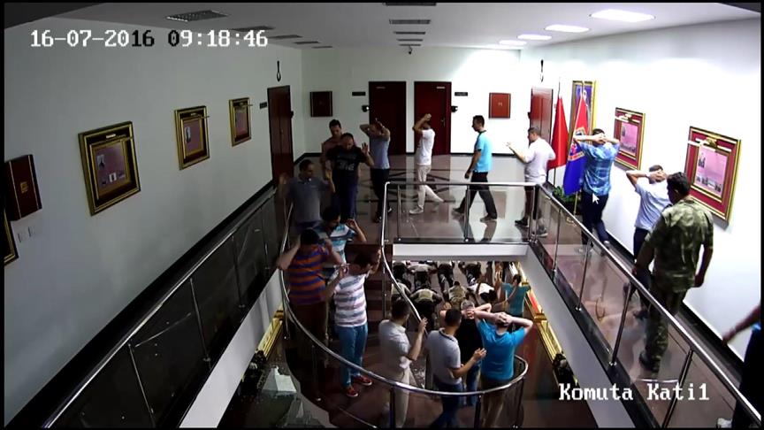 The video footage, which was obtained by Anadolu Agency correspondent, showed the putschists took over the Command together with civilian dressed intelligence officers, took weapons and ammunitions from the arsenal and tried to arrest other soldiers.