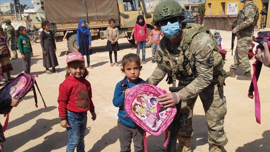 "Our heroic soldiers continue to brighten up the faces of children. A total of 372 children received clothing aid in six villages in Operation Peace Spring region," the ministry said on Twitter.