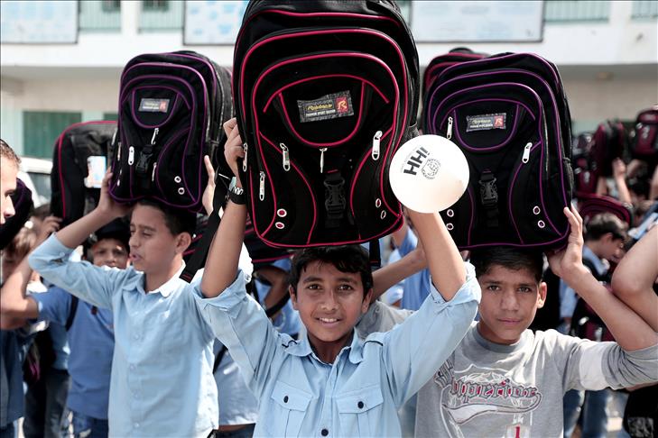 A Turkish charity on Saturday distributed 5,000 schoolbags to students affected by the latest Israeli war in eastern Gaza City.