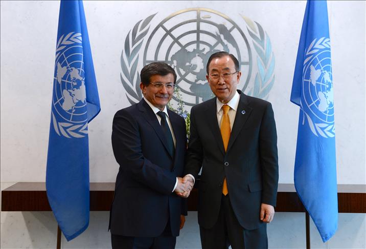Ahmet Davutoglu met U.N. Secretary General Ban Ki-moon and President of the U.N. General Assembly in New York after attending the Caribbean CARICOM summit held in Saint Vincent and the Grenadines Tuesday.