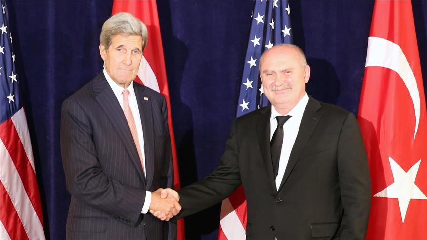 Turkish Foreign Minister Feridun Sinirlioglu held face-to-face talks with his U.S. counterpart John Kerry on Thursday amid escalating tensions between Russia and the West over Syria.