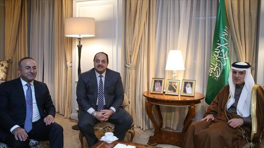 Cavusoglu's meeting with Saudi Foreign Minister Adel al-Jubeir and Qatari Foreign Minister Khalid bin Mohamed al-Attiyah at a New York hotel was closed to media and came on the eve of the third International Syria Support Group meeting aimed at brokering an end to the war, now in its fifth year.