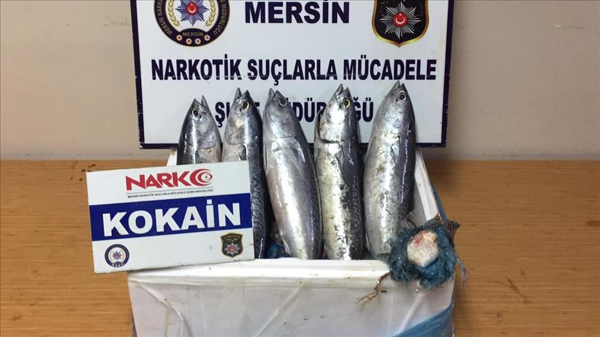 Anti-narcotic police teams cut open 5 bonitos filled with sachets of cocaine -- 55 grams (0.12 pounds) in total -- after a sniffer dog made the finding in a styrofoam box ferried a bus in the southern Turkish province of Mersin.