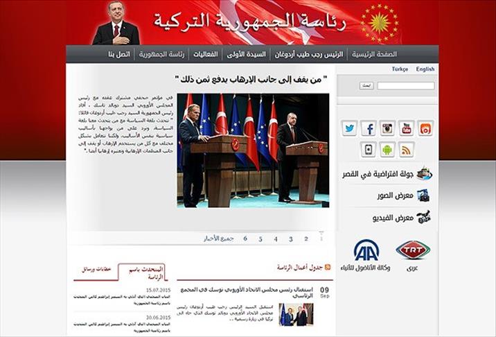 Apart from statements, the Arabic edition will give visitors a virtual tour of Turkey's presidential palace, Bestepe Millet Mosque (Nation Mosque), Ataturk Museum House and Office of the Chief Aide in Arabic language.
