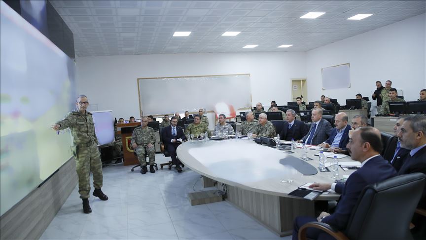 Turkey’s President Recep Tayyip Erdogan visited Sunday a command and control center in the border province of Sanliurfa where he was briefed about the ongoing operation in northern Syria.