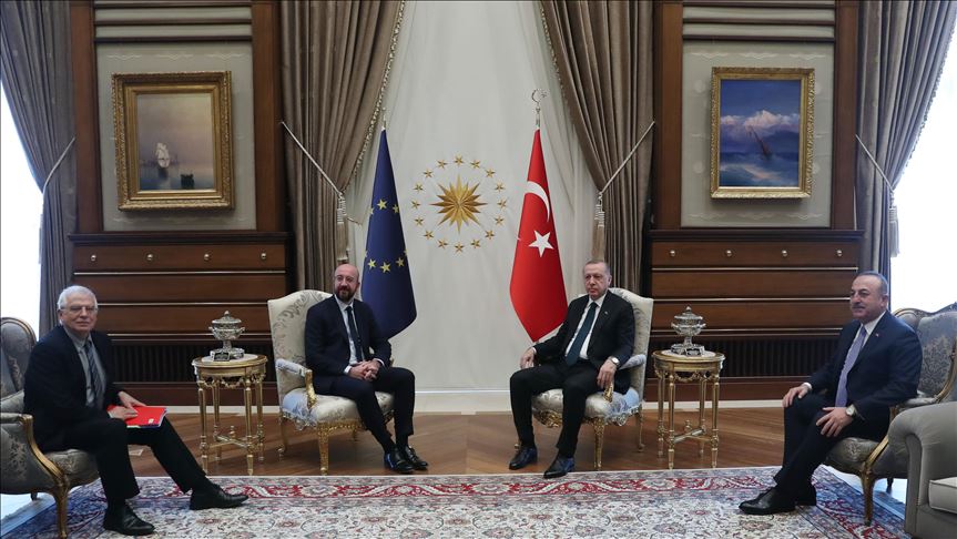 His first meeting was with European Council's Charles Michel at the presidential complex in Ankara.