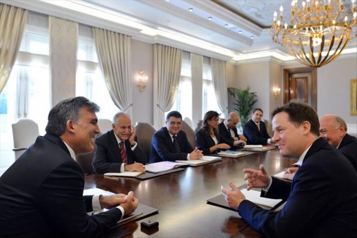 Turkish President Abdullah Gul received British Deputy Prime Minister Nick Clegg and an accompanying delegation in Ankara on Wednesday.