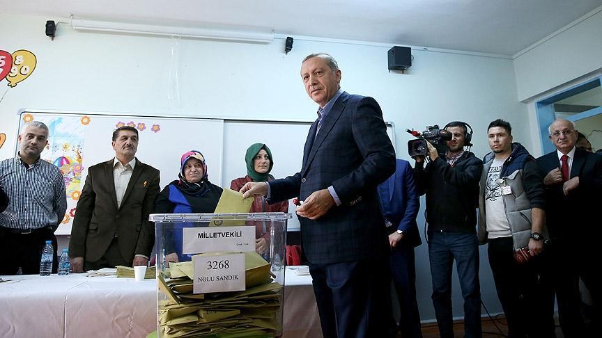 Turkish President Recep Tayyip Erdogan cast his vote Sunday in the country's 26th general election.