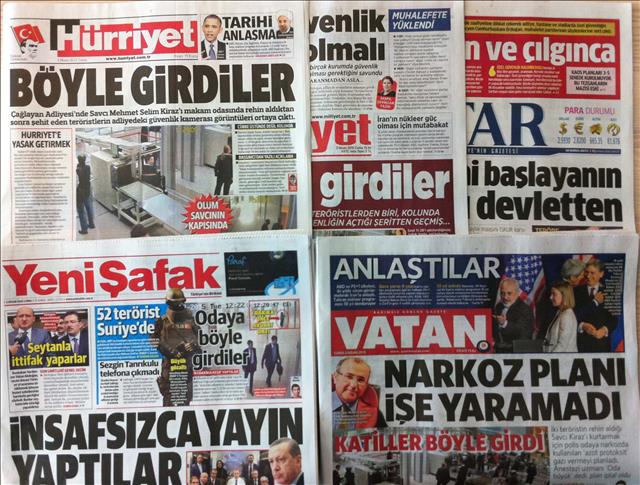 Friday’s dailies focused on the release of official reports on how a Turkish prosecutor was killed after a courthouse raid, Prime Minister Ahmet Davutoglu’s announcement on economic incentive measures, developments on Tuesday’s national power blackout and the major world power’s framework nuclear deal with Iran.