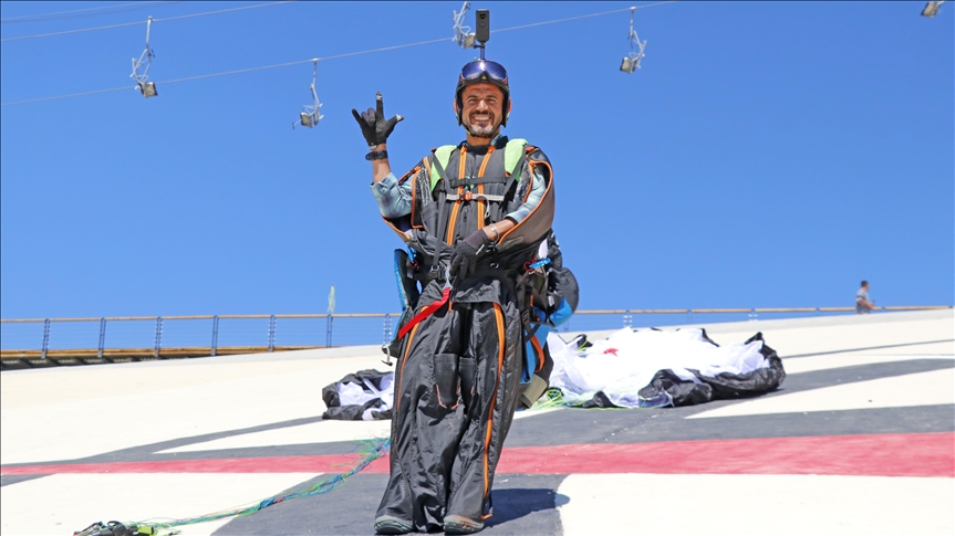 "I take 20-25 minutes to get from the main cable car station to Babadag. On the way home, in the evening, I take off with a paraglider and do a wingsuit jump," said Cengiz Kocak, whose workplace is perched on the 1,965-meter-high Babadag in the Fethiye district of Mugla province.