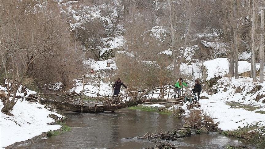 The Ihlara Valley, which is among the world's largest canyons and resembles an open-air museum with its historical and natural beauty, attracts hikers looking to walk along trails of unequaled winter views.