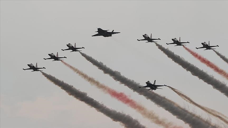 Turkish air show teams SoloTurk and Turk Yildizlari and Turkish Armed Forces F-16 planes and gendarme teams as well as the Fursan al Emarat aerobatic display team from the United Arab Emirates and Morocco Air Force team put on dozens of shows.