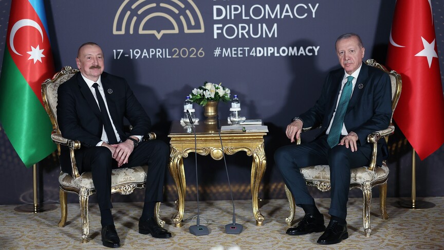 Türkiye's President Recep Tayyip Erdogan and his Azerbaijani counterpart Ilham Aliyev on Friday discussed ties between the two nations, as well as regional and global issues on the sidelines of the Antalya Diplomacy Forum, said Türkiye's Communications Directorate.