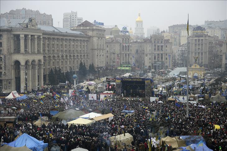 Protesters have taken to the streets in several cities across Ukraine, attempting to set ablaze or occupy government and party buildings, according to AA's correspondent in capital Kiev.