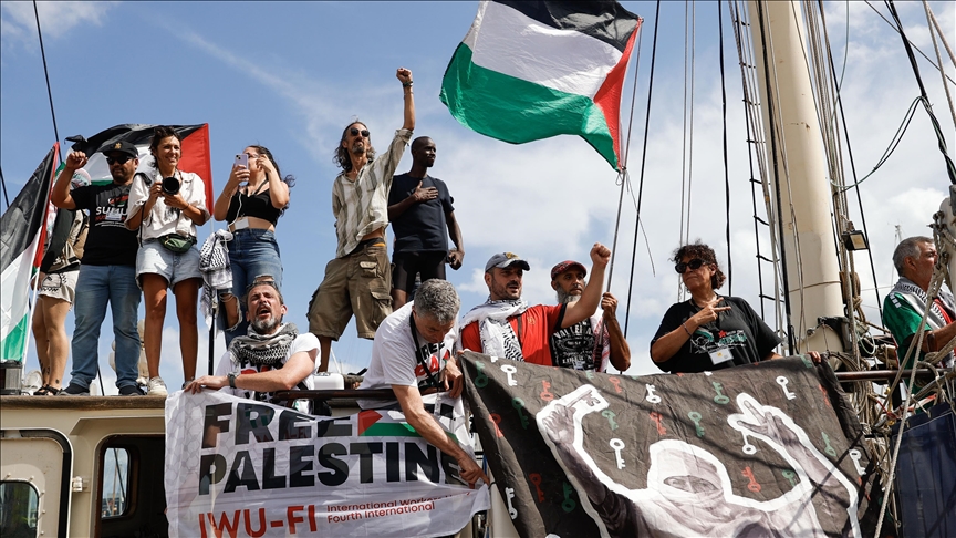 Around 200 activists, politicians and artists from 44 countries initially set sail Sunday from Barcelona after a large rally in support of the mission.