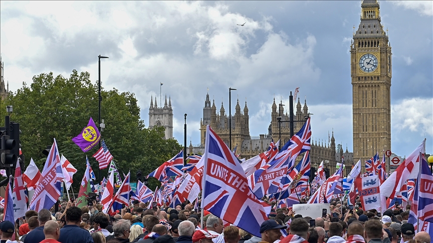 Carrying Union and St. George's flags, many protesters shouted slogans against Prime Minister Keir Starmer and the Metropolitan Police.