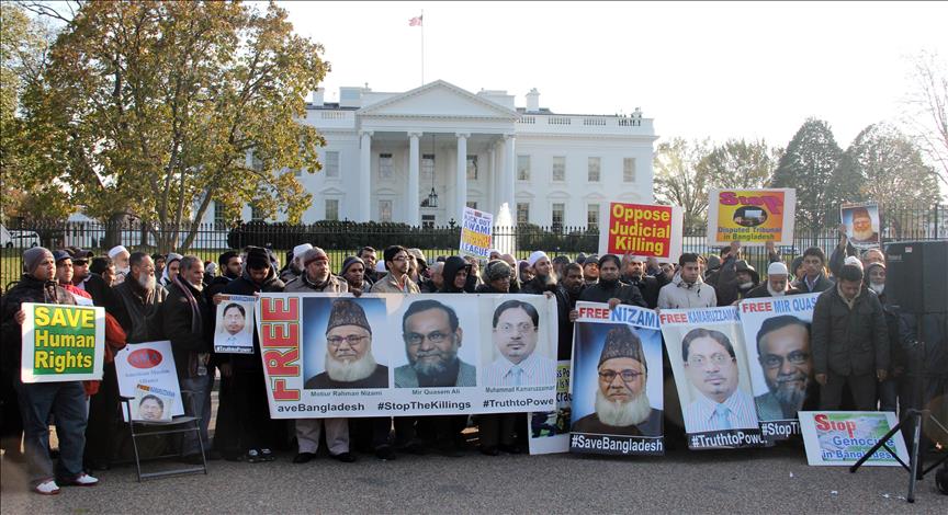 About 1,000 demonstrators gathered Thursday in front of the White House to protest the death sentences of three members of the Jamaat-e-Islam political party in Bangladesh.