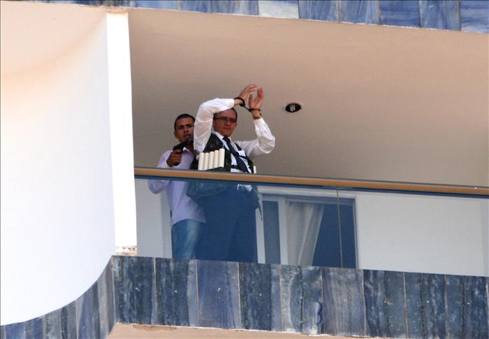 Television images captured Santos as he paraded his unidentified 50-year-old male hostage on the balcony of a room on the 13th floor of the upscale Saint Peters Hotel. The hostage was wearing what was believed to be an explosive vest but was later determined to be fake. The gun was determined to be a toy.