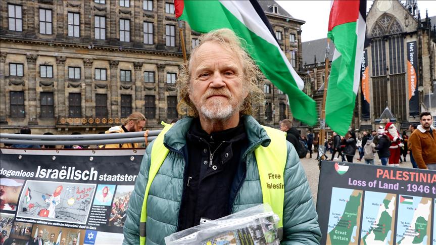 “What I’ve been doing is not about anti-semitism,” Vrouwe told Anadolu Agency. “I am holding a protest here at Dam Square due to my love and respect for Palestinians.”