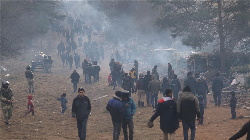 Around 2,000 migrants, including women and children, who left camps Monday for the western border with Poland waited at the Bruzgi-Kuznitsa border checkpoint.
