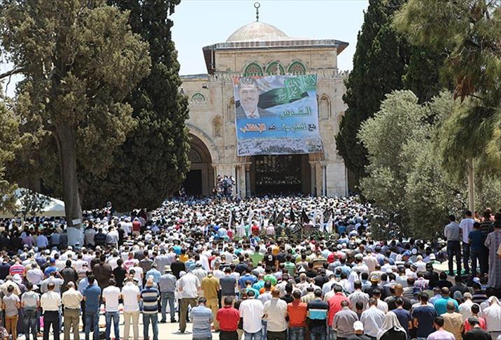 JERUSALEM (AA) – Palestinian worshippers marched Friday through Al-Aqsa Mosque, Islam's third holiest shrine, in support of the ousted Egyptian president Mohammad Morsi.