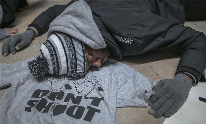 In a bid to keep people involved in the issue of police violence against black men, dozens of protesters continued to demonstrate in New York City on Sunday evening, staging die-ins at several landmarks in the city.