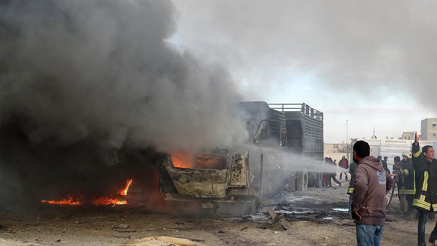 Local sources say the airstrikes, which occurred in Aleppo’s Azaz area, struck an aid convoy delivering supplies to refugees, killing seven drivers and leaving 20 trucks in flames.