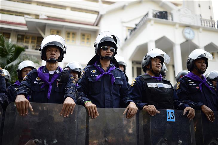 Police managed to retake a part of Rajdamnoen road, a broad avenue next to Government house, which had been abandoned at dawn by the demonstrators. In tents, formerly occupied by protesters, they found a number of small bombs, slingshots and, according to local newspaper The Nation, a cache of arms.