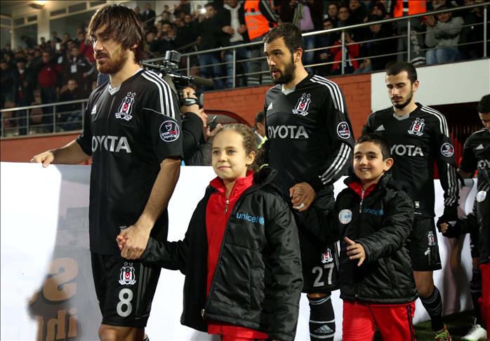Before the Gaziantepspor and Besiktas match kick off on Friday, both teams' walked on the pitch hand-in-hand with Syrian refugee children from camps in Turkey's Gaziantep province.
