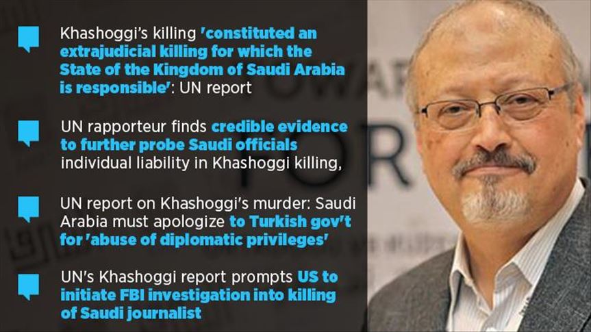 In the report, Agnes Callamard, the UN special rapporteur on extrajudicial, summary or arbitrary executions, said she found "credible evidence" to further probe Saudi officials’ individual liability in the Khashoggi killing at the Saudi Consulate in Istanbul, including Crown Prince Mohammed Bin Salman.