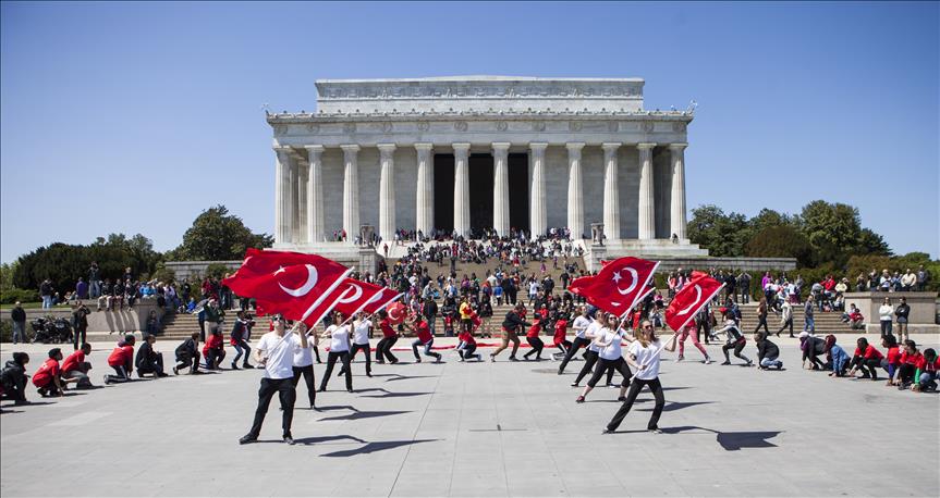 "We are proud to open the Turkish flag" in one of the most visited places in Washington, said Ayhan Ozmekik, spokesman of the Istanbul-based Turkic Platform that organized the event to target American audiences.