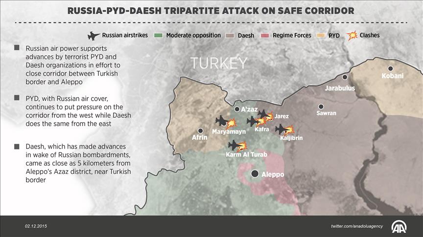 The Daesh militant group and the PYD, the terrorist PKK organization’s Syrian affiliate, have recently stepped up attacks -- with Russian air support -- on a strategic corridor between Syria’s northern Aleppo province and the Turkish border.
