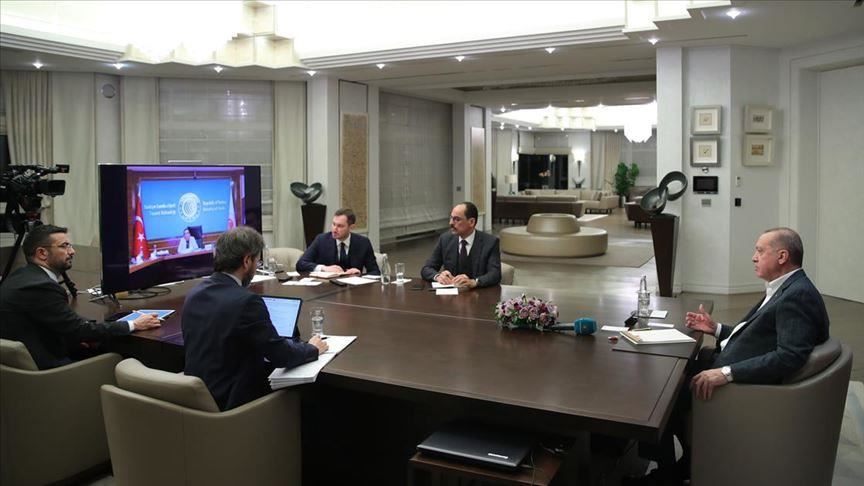 Le président turc, Recep Tayyip Erdogan, a discuté avec les membres du cabinet présidentiel par vidéoconférence.