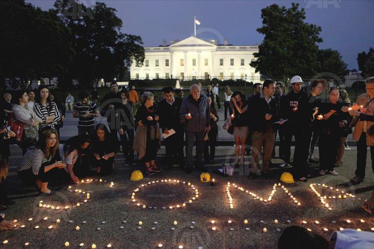 Une cinquantaie de personnes, arborant des casques de protection de mineurs, se sont rassemblés devant la Maison Blanche et ont allumé des bougies en mémoire des nombreux ouvriers ayant trouvé la mort dans la mine de Soma.