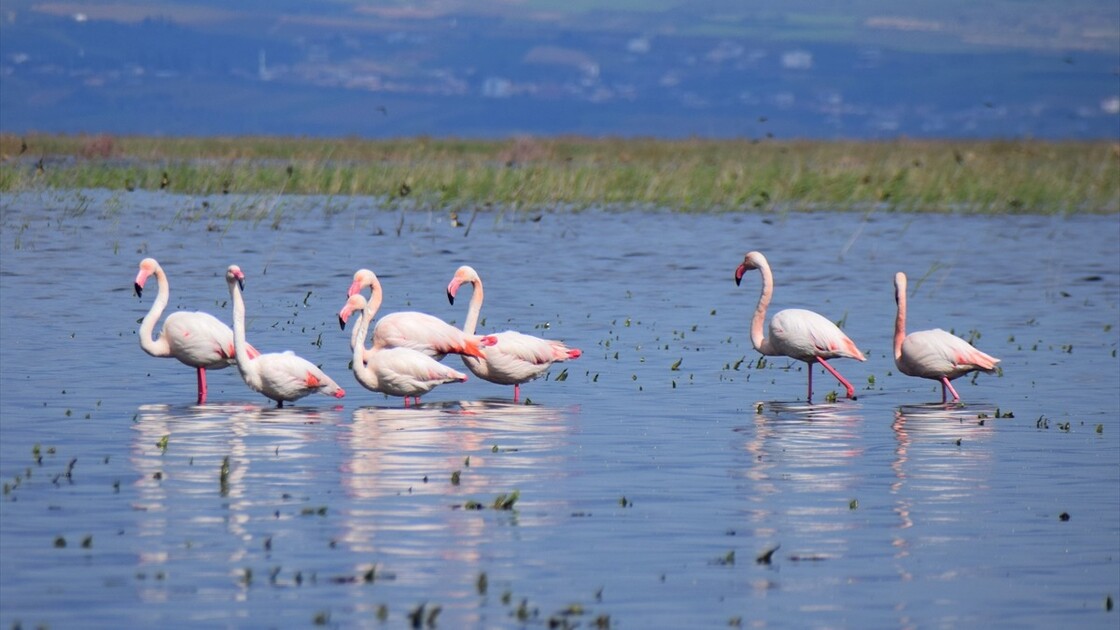 MANISA, TURKIYE: Kawanan flamingo berkumpul di Danau Marmara, Manisa, Turkiye, yang sempat mengering total pada 2021 dan kini terisi kembali setelah hujan, menjadi habitat burung migran lagi pada 12 April 2026.