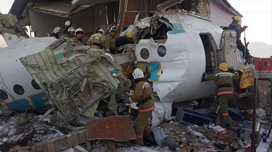 Menurut Komite Situasi Darurat Kazakhstan, pesawat Bek Air dengan tujuan penerbangan ke Almaty jatuh saat lepas landas dan kemudian menabrak sebuah bangunan.