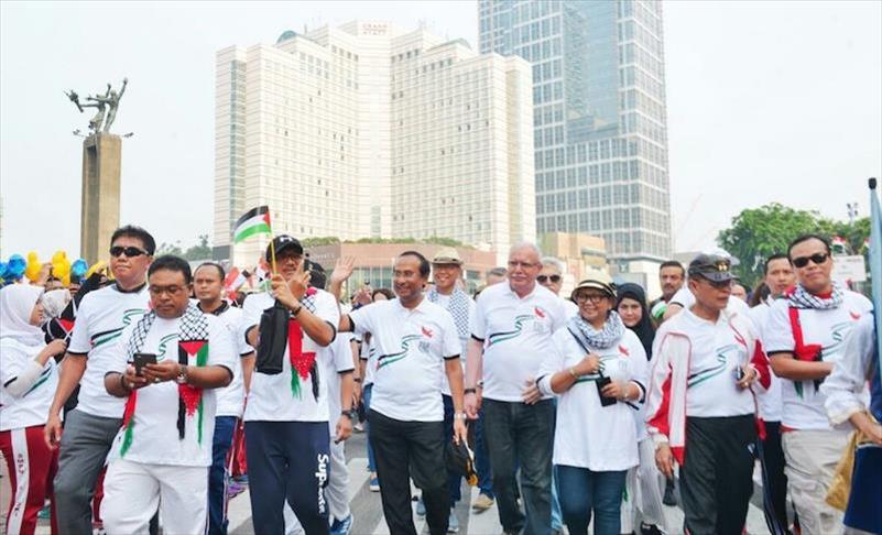 Jalan bersama ini merupakan rangkaian Indonesian Solidarity Week for Palestina yang digelar pemerintah pada 13-17 Oktober 2018.