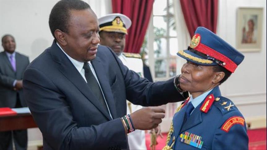 "Mayor Jenderal, sebuah kehormatan dan kebahagiaan bagi saya hari ini untuk menyaksikan Anda menjadi wanita Kenya pertama yang menjadi mayor jenderal dalam sejarah negara kita," kata Presiden Kenyatta.